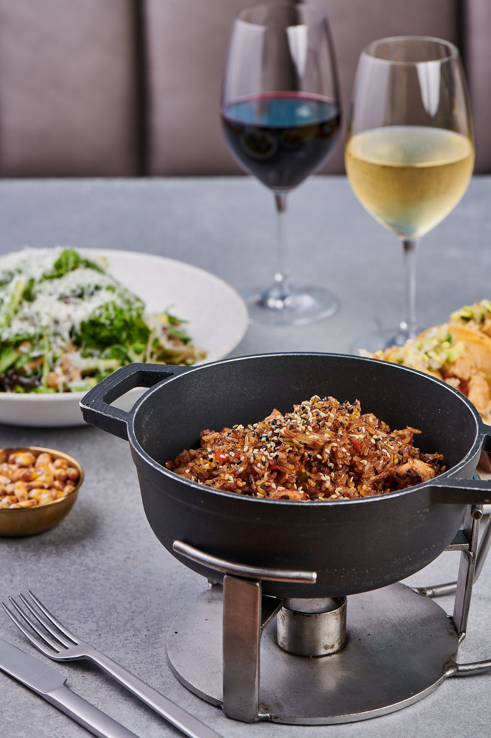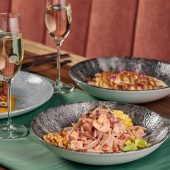 Su menú ofrece una amplia variedad de opciones que van desde cortes de carne premium y mariscos frescos hasta platos creativos como el arroz cangrejoso. Cada plato está diseñado para deleitar los sentidos, acompañado por una carta de vinos cuidadosamente seleccionada, cócteles de autor y postres exquisitos que completan la experiencia.